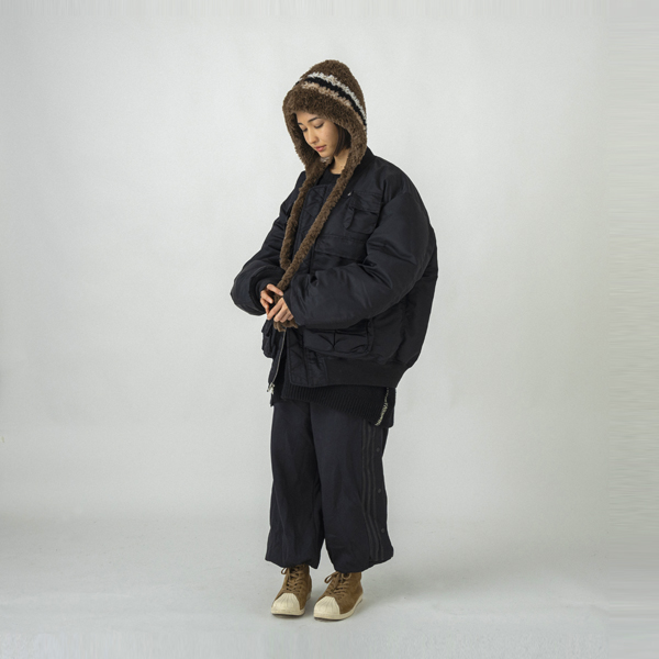 Price: $19.00 / €16.00 Color: BLACK/GREY/OFF KHAKI Made in: CHINA Material: PL 100% PK: LC 55 NY 35% CO 7% LI 3% (RIB:AC 100%)
