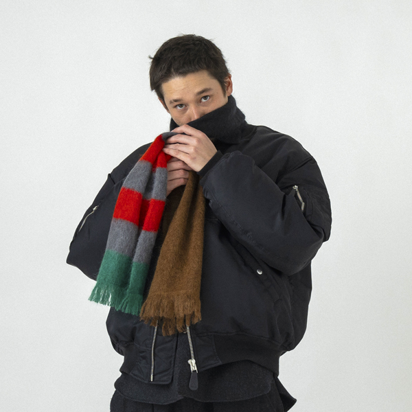 Price: $28.50 / €24.00 Color: *BLK x O.D x RENGA/ WO 68% CO 32% *GREY x NAVY/ WO 30% CO 70% *BRW x BLK x CITRON/ WO 50% WO 50% *NAVY x OLV x GRN/ WO 54% PL 30% RA 16% Made in: CHINA Material: Varies by color Size (about): 160cm x 35cm