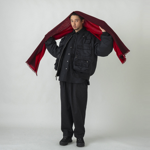 Price: $62.00 / €51.00 Color: BLACK x GREY/NAVY x ROYAL/ BURGUNDY x RED/DK.BROWN x MOCA GREY Made in: NEPAL Material: WOOL 100% Size (about): 190cm x 70cm HAND PRINT
