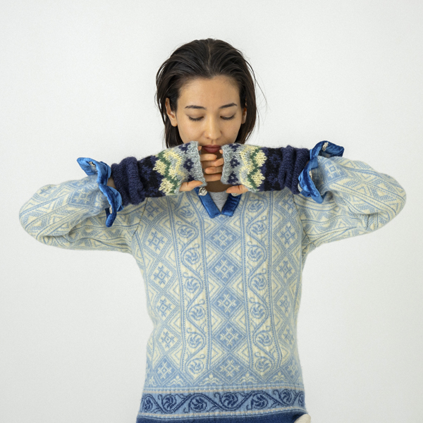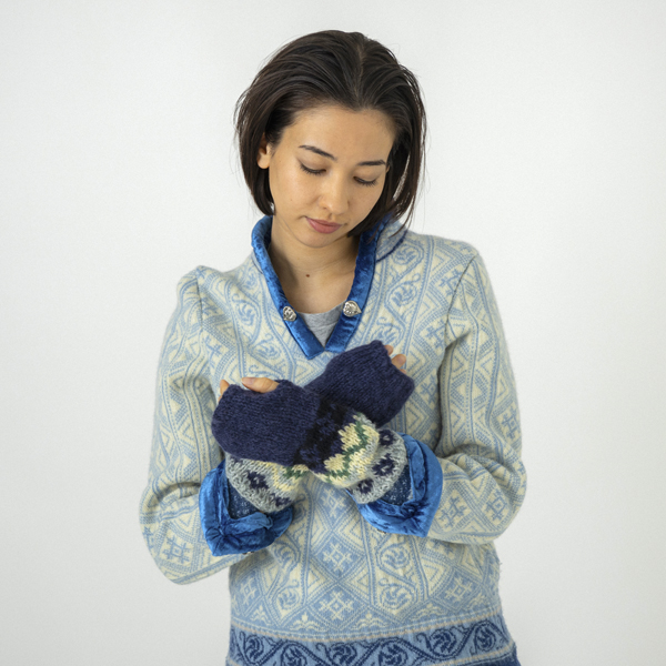 SB263-0608 HAND KNIT MIX GLOVE